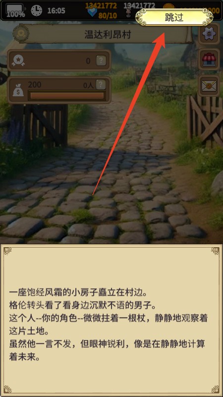 3、刚开始会有一段剧情介绍,点击右上角的【跳过】即可。